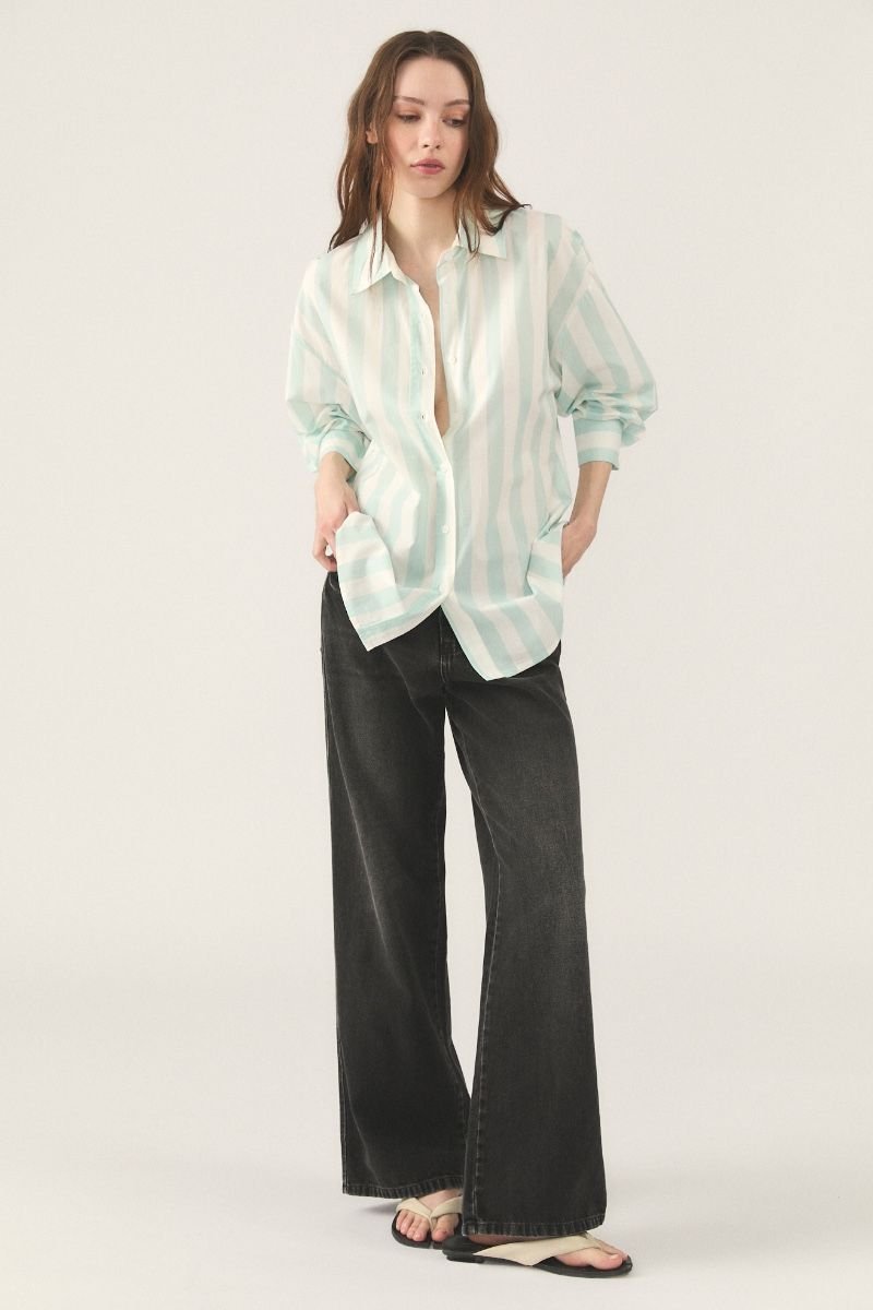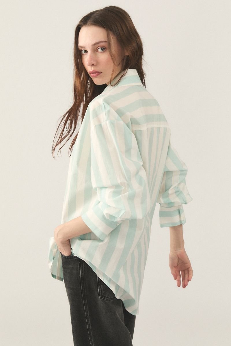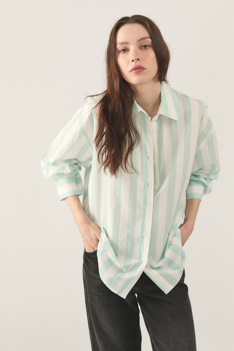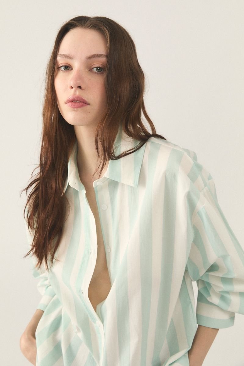 Camisa de poplin rayado de algodón. Fit Oversize manga larga.