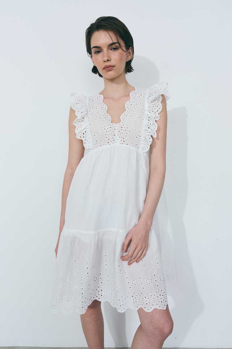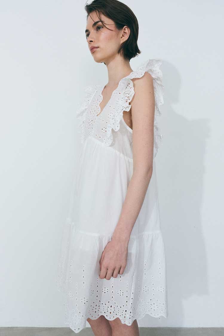 & Free ShippingVESTIDO 100% ALGODÓN. CON FORRERÍA. CON DETALLES DE BRODERIE Y VOLADOS.